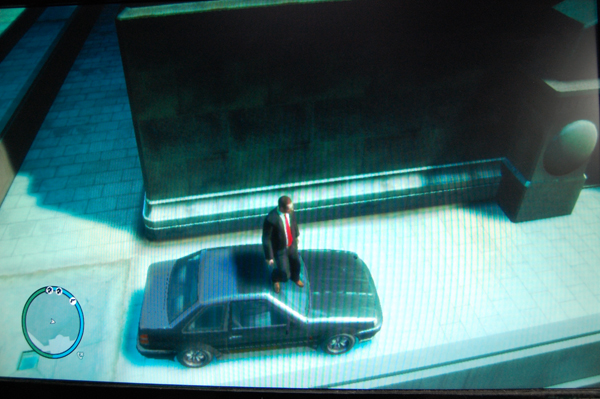 飛ばされた先にはGTA4に出てくるようなストリップバーがあり、屋根を突き破って入店。