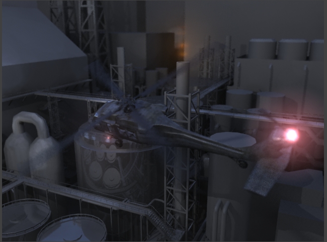 UH60を飛ばしてみた。 背景モデルはまだテクスチャマッピングしてねぇ(笑